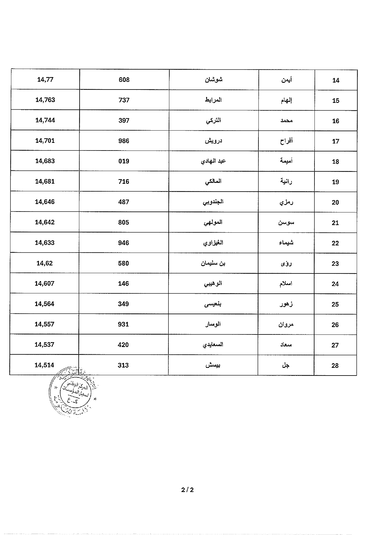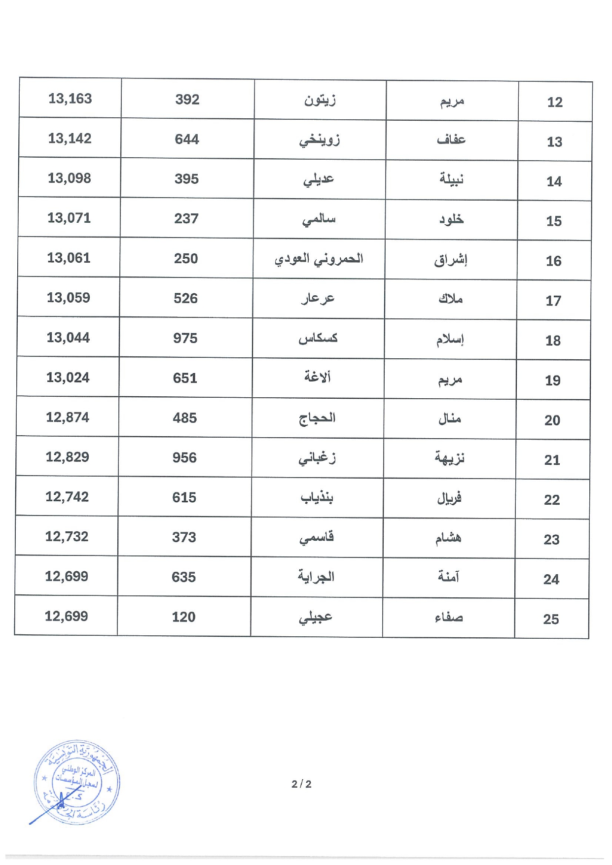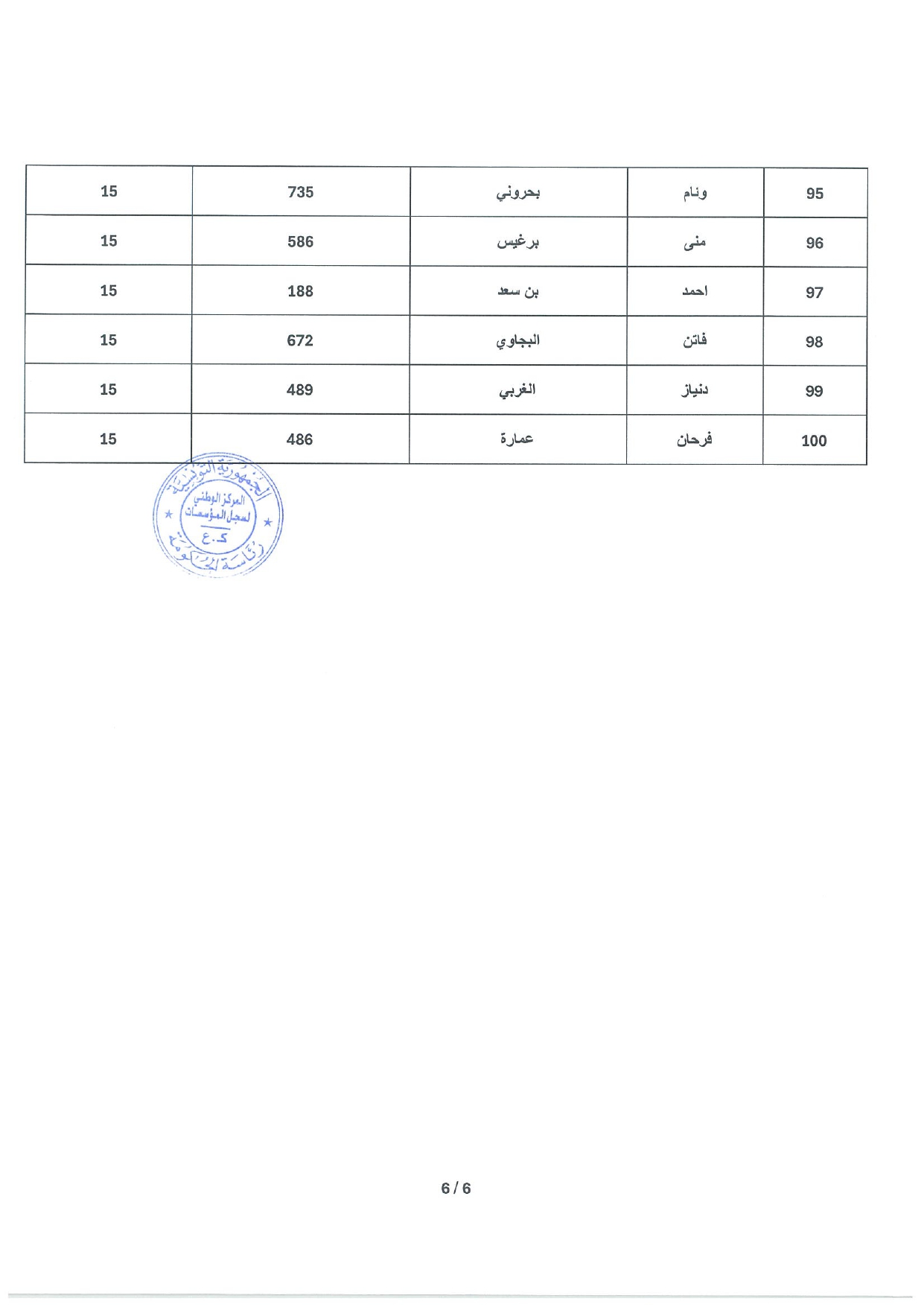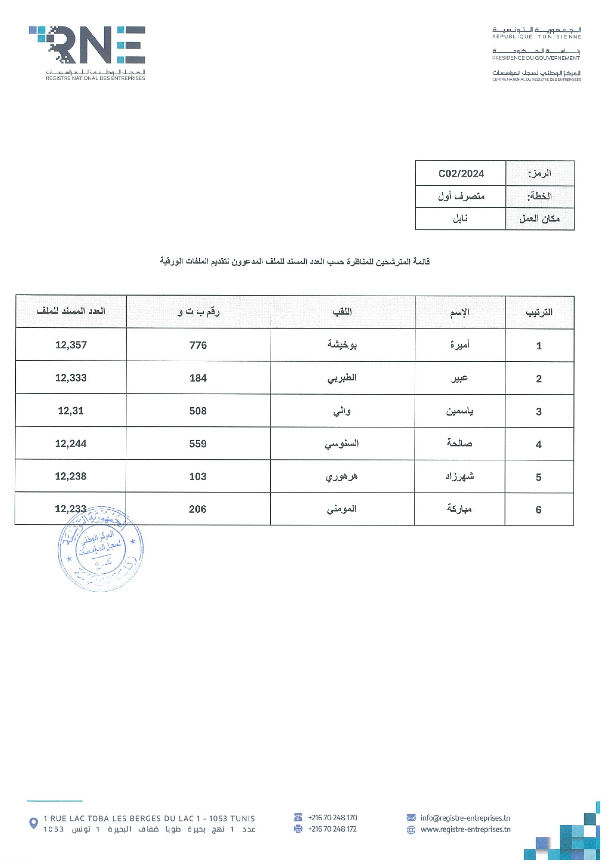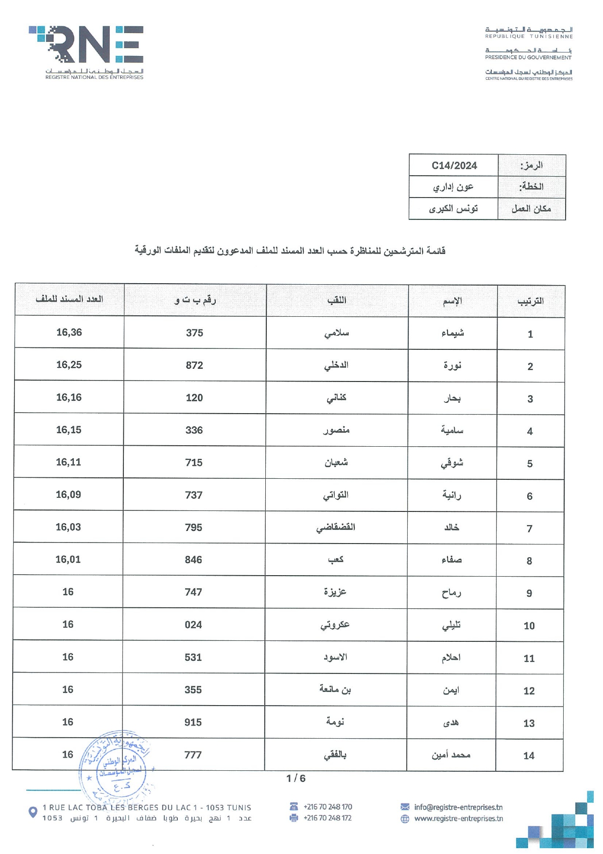 نتائج الترتيب الآلي للترشحات عن بعد للمناظرة الخارجية لإنتداب أعوان قارين بالمركز الوطني لسجل المؤسسات بعنوان سنة 2024